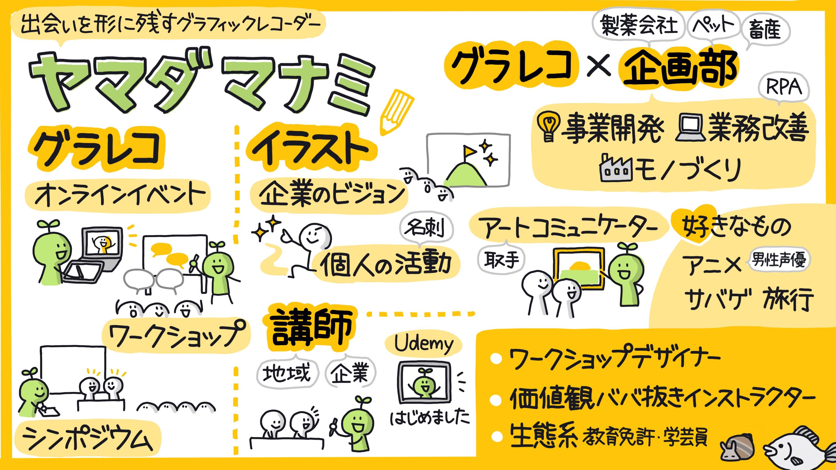 | 録画動画のグラレコ | 1枚 55,000円〜 録画されたイベント・インタビューをグラレコ風イラストにします |