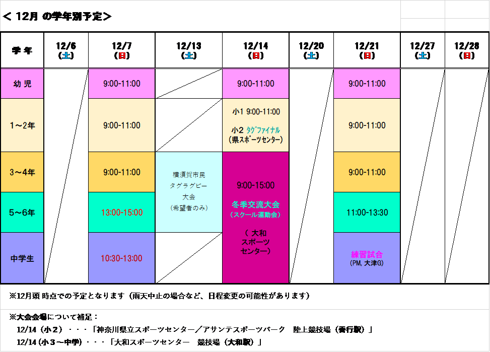 ※小3~中学・・・ 12/14 スクール運動会(大和駅)