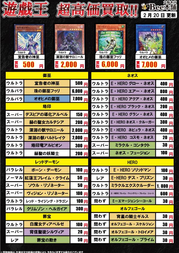 遊戯王 高額買取表