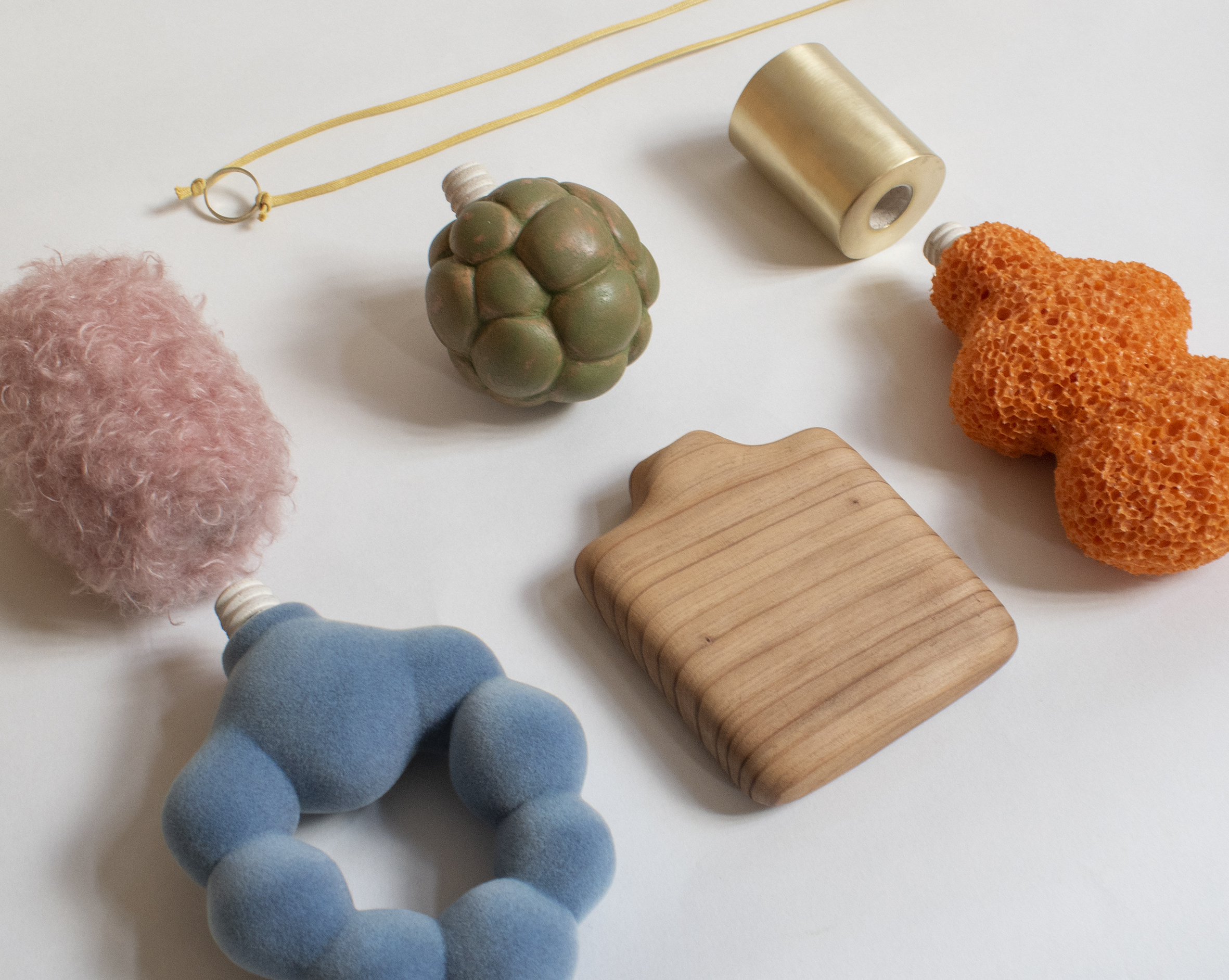 Anhänger/ 2023/ u.a. Holz, Schwamm, Messing