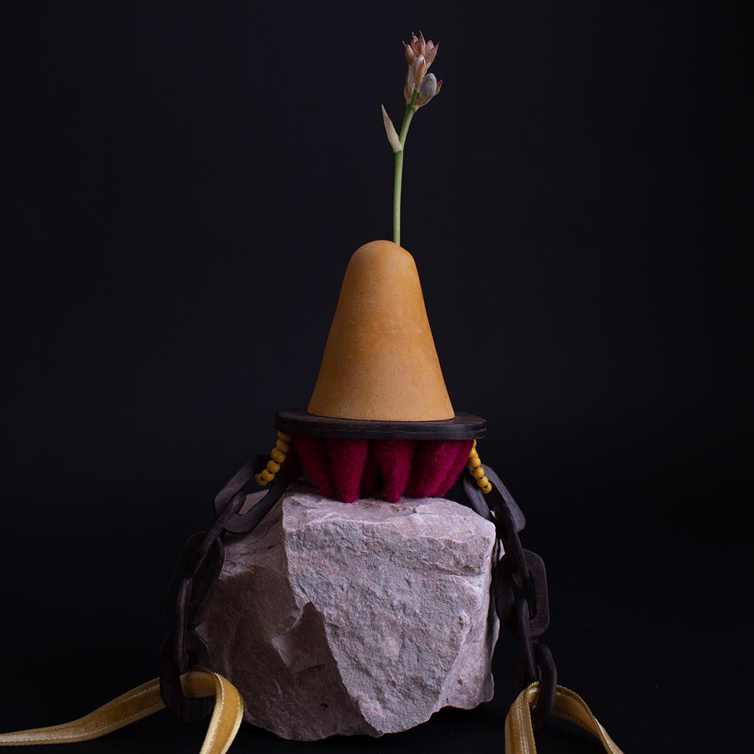 Kopfschmuck/ 2025/ Wood Clay, Holz, Stoff