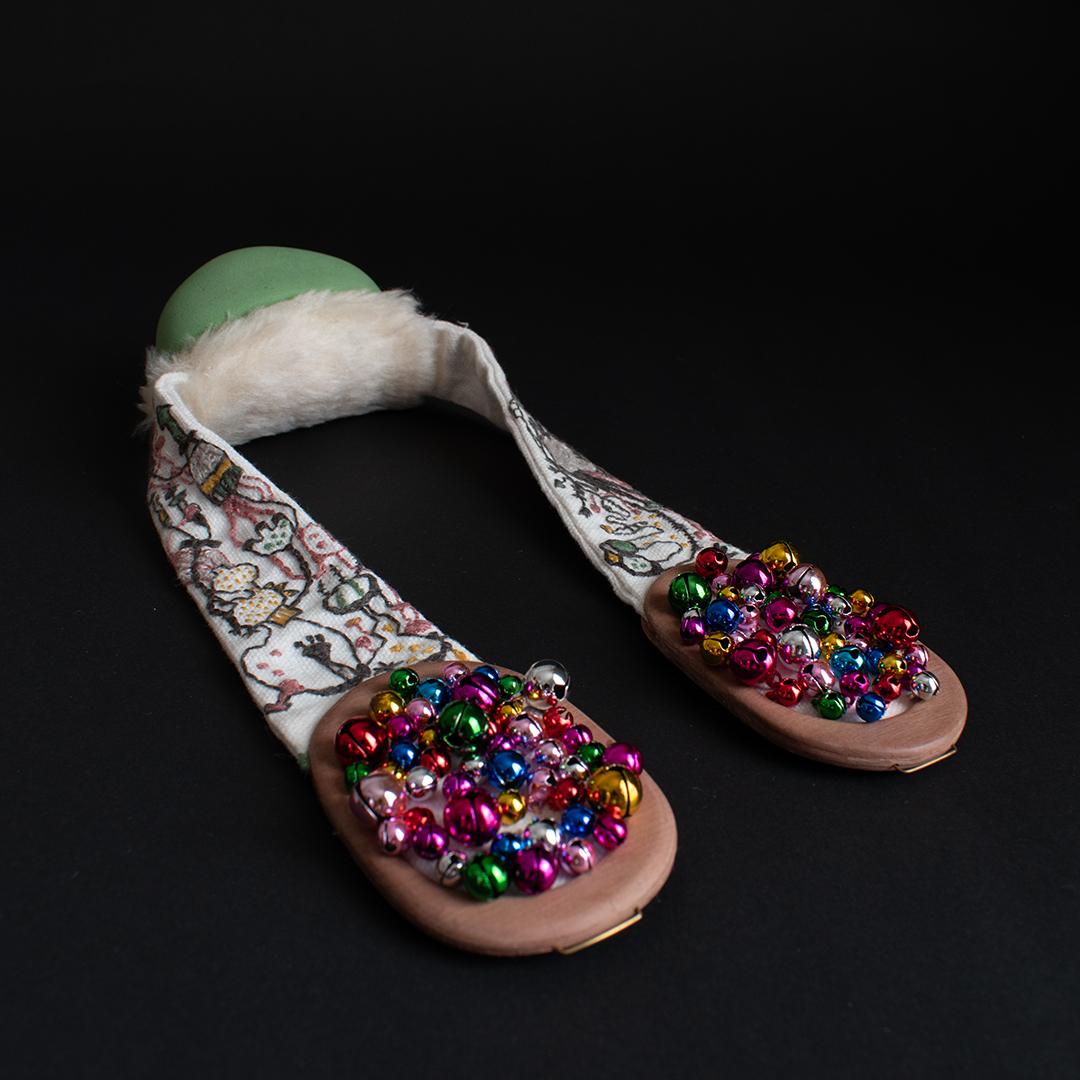 Kopfschmuck/ 2025/ Wood Clay, Stoff, Holz, Glöckchen