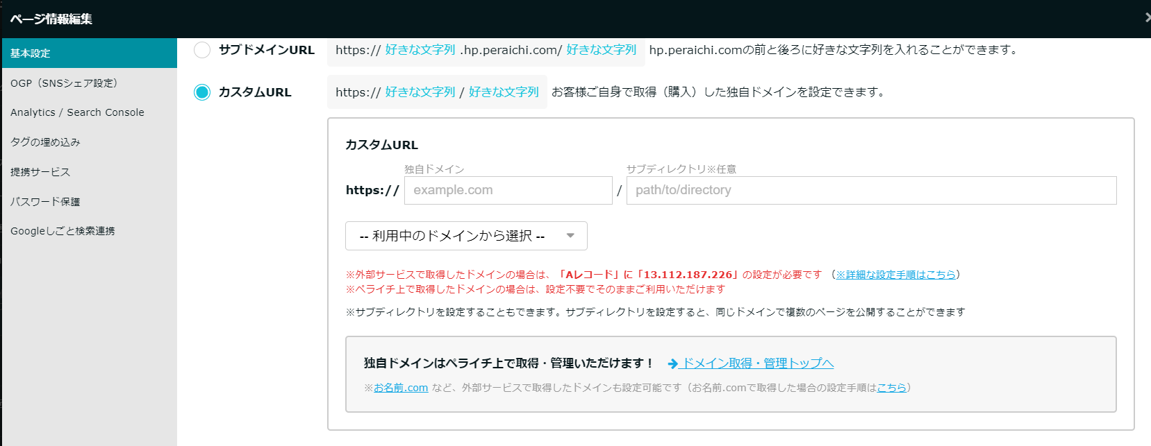 ペライチで独自ドメイン購入を検討される際は、こちらのヘルプページをご参考ください。