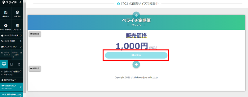 1.STEP1で作ったページに設置した決済ブロックのボタン部分をクリック