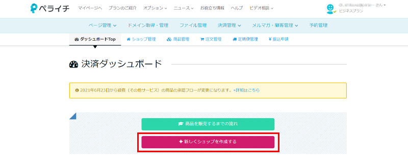 ※既にショップは作成済みで、定期購読も同じショップで行いたいという方はこの工程は不要ですのでSTEP3へ進んでください