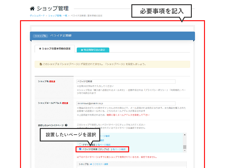 2.「+新しくショップを作成する」をクリックし、ショップ情報を記入します。