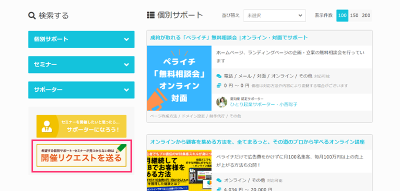 ペラナビトップにてセミナーをリクエストできるようになりました。
