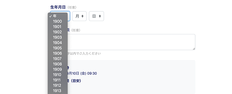 誕生年が1900年から選択可能になりました。これにより国内最高年齢の方も含めた、全お客様の生年月日がカバーできるように◎