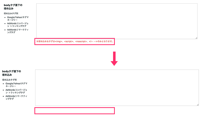 これまで「bodyタグ直下の埋め込み」に埋め込めるタグには限りがありましたが、制限を解除しどんなタグも埋め込めるように!