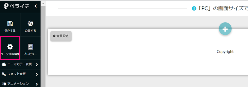 1.ページ編集画面のメニュー内「ページ情報編集」をクリック