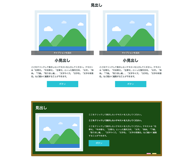 また、上画像(2列・キャプチャ付き)と黒板のブロックが新登場!