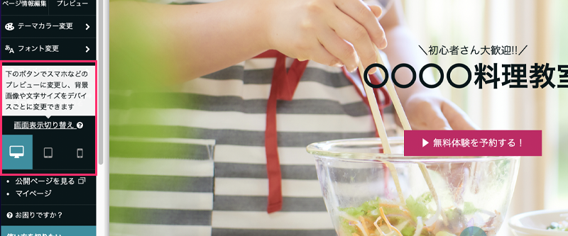 編集画面の左メニューからできる、PC表示での編集とSP表示での編集がよりわかりやすくなるように編集画面を修正しました^^