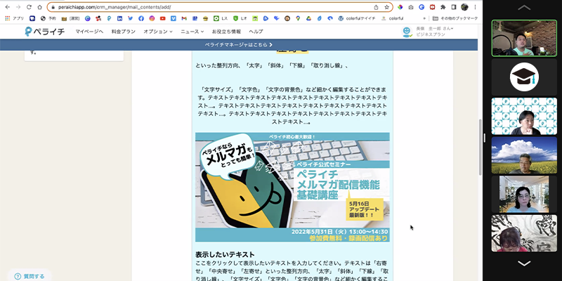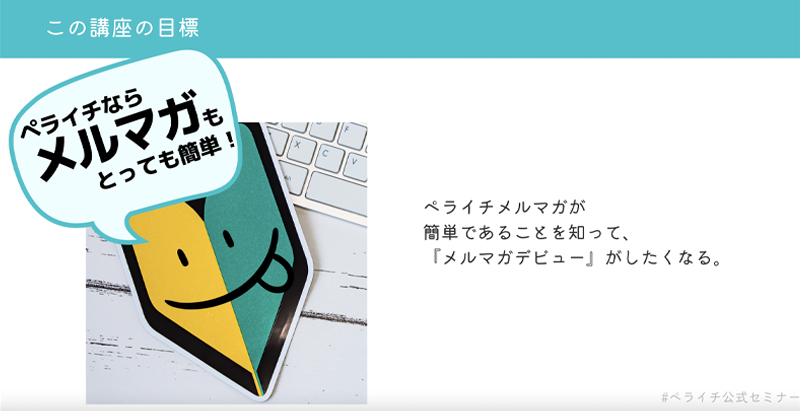 今回参加したセミナーは、最近バージョンアップしたペライチの「メルマガ機能基礎講座」。