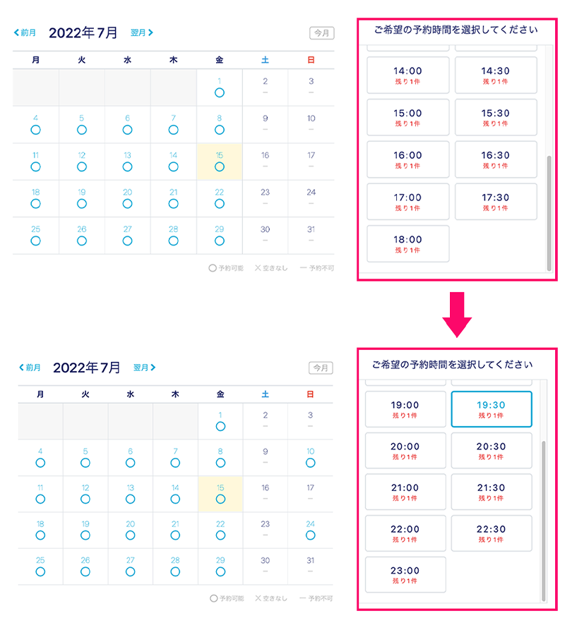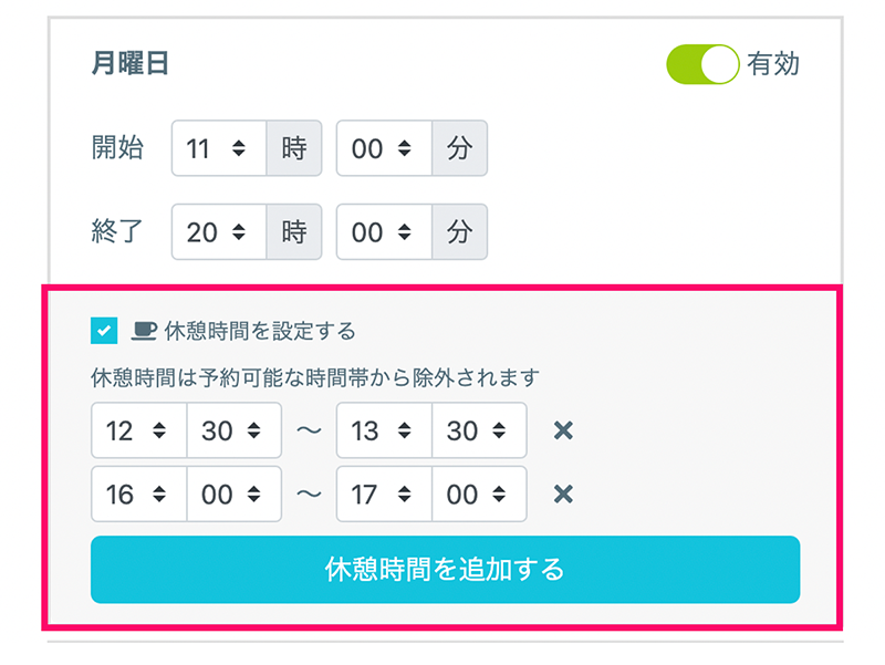 これまでは1枠のみ設定が可能でしたが、複数可能になったことで、より柔軟な予約受付日時の設定ができるように^^