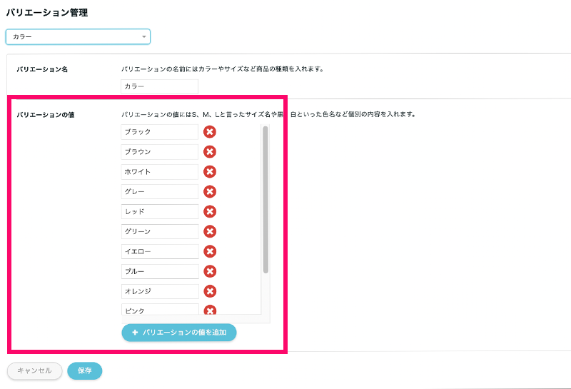 SKU設定(商品詳細)で変更できる「バリエーションの値」が最大10個→50個まで上限がUPしました!