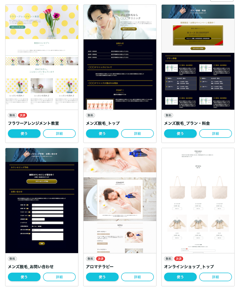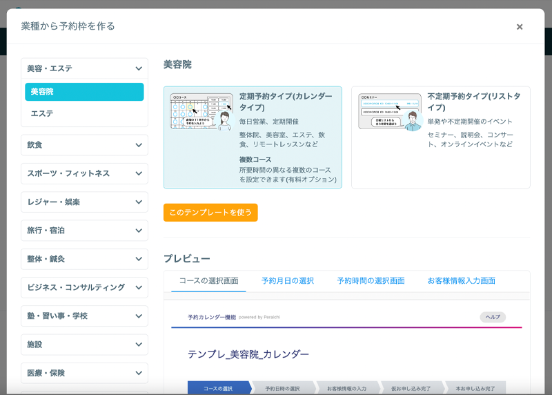 テンプレートには、あらかじめ業種ごとに使いやすいコース内容やお客様情報入力項目がセットされています◎