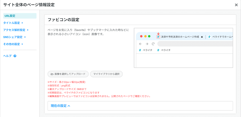今回のアップデートで、ページ編集・サイト管理において「ページのタイトル・説明文」「ファビコン(ブラウザを開いた際にブラウザのタブに表示される小さい画像)」の編集時に図解と説明文を追加!