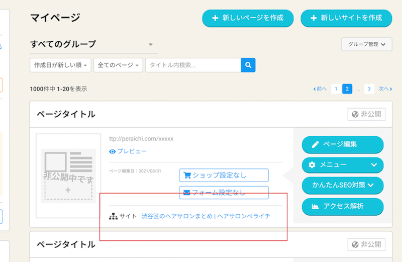 今回のアップデートにより、マイページ上でページとサイトの紐付けが確認できるよう、リニューアル!