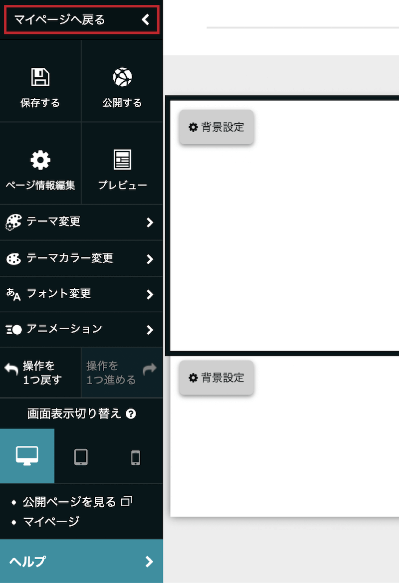 以前はページ編集画面の左上の「ペライチのロゴ」からマイページへ戻っていました。