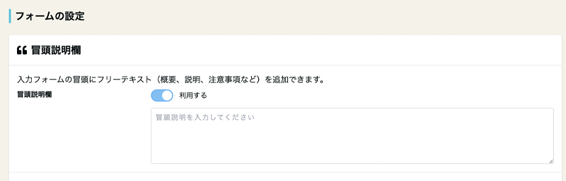 入力フォームの冒頭にフリーテキストが追加できるようになりました!