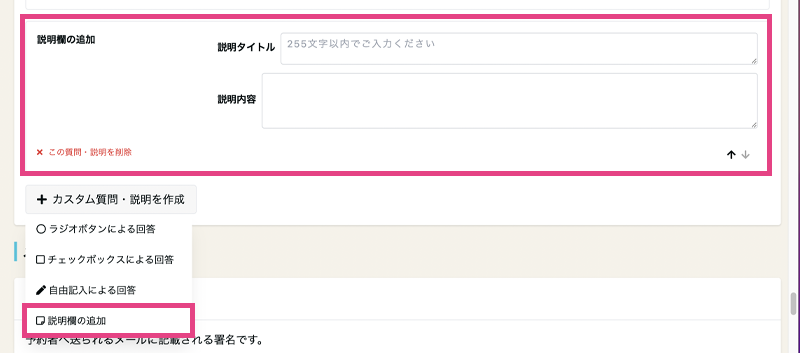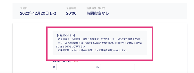 予約ページ内に予約の概要や注意事項などを記載したい場合にご活用いただけます♪