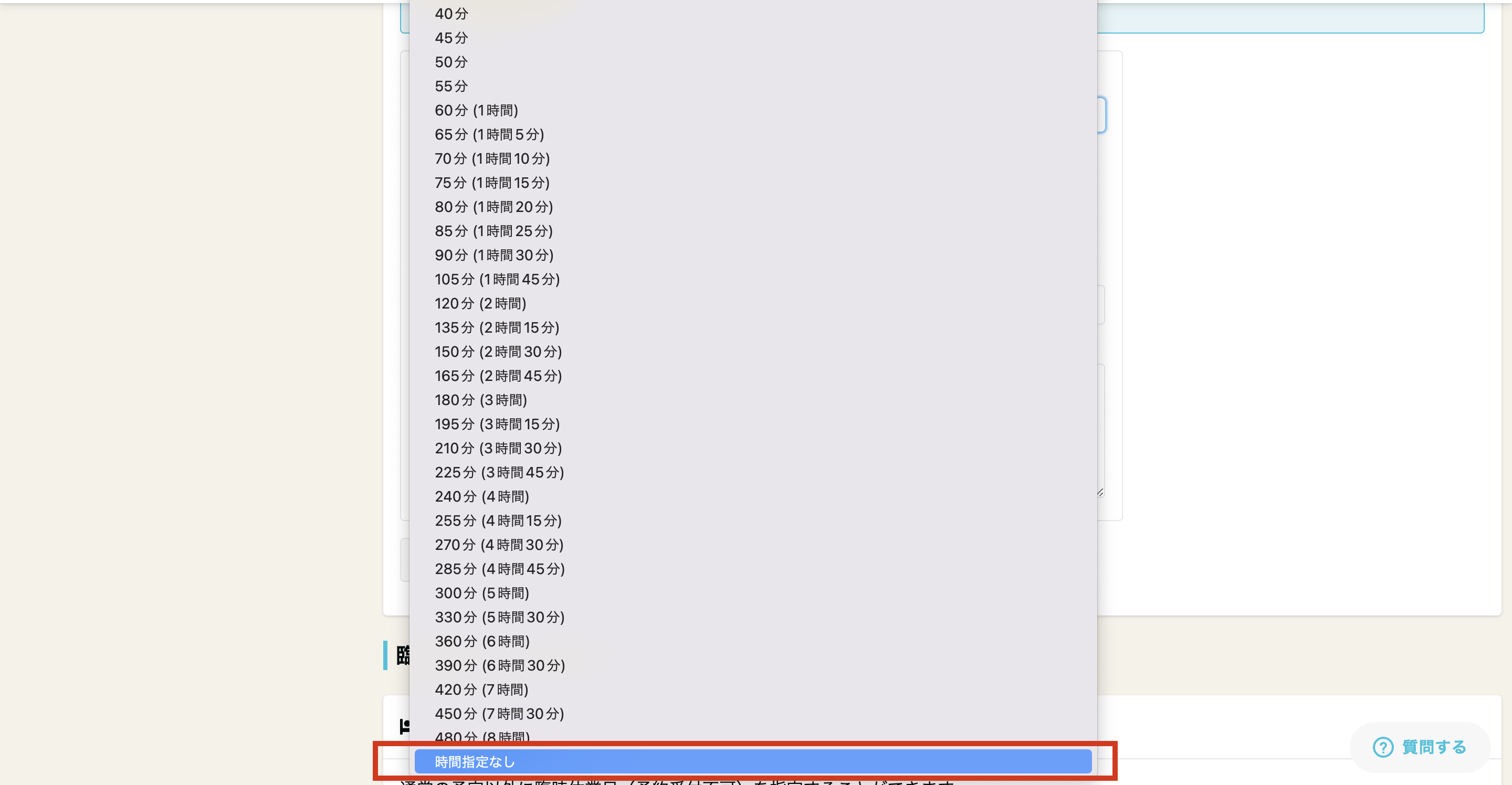定期予約コースの所要時間を設定する際に「時間指定無し」の選択肢ができ、日付を設定せずに終日予約が可能になります。