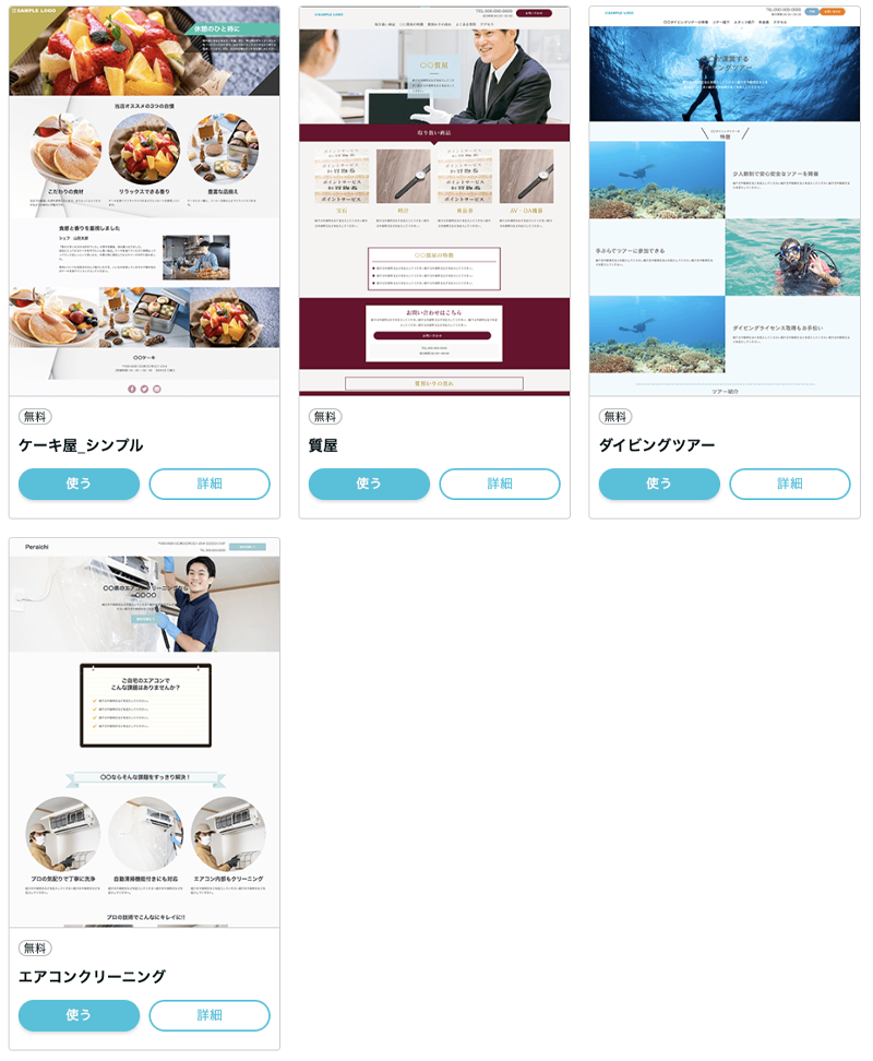 エアコンクリーニングやダイビングツアーなどのテンプレートが4点がリリースされました♪