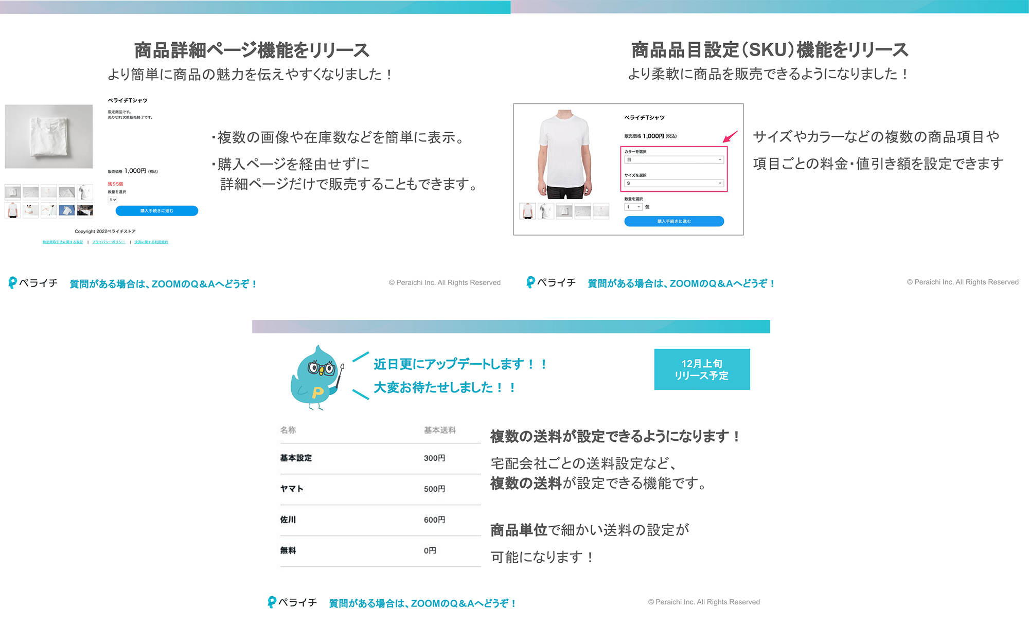 お知らせ3:新機能「ペライチなんでもマーケット」をリリース