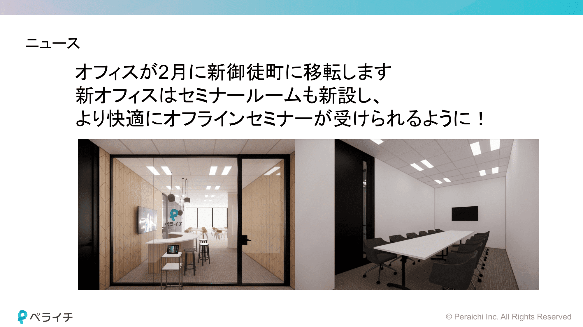 セミナールームを新設し、オフラインセミナーもより活発に行えるようになる予定です。