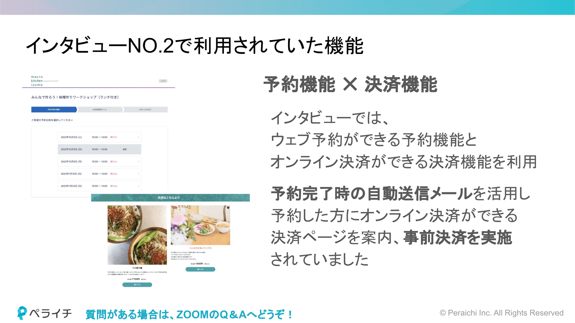 続いて、ペライチを通じて事業成長されたユーザー様2名のインタビューを実例としてご紹介しました。