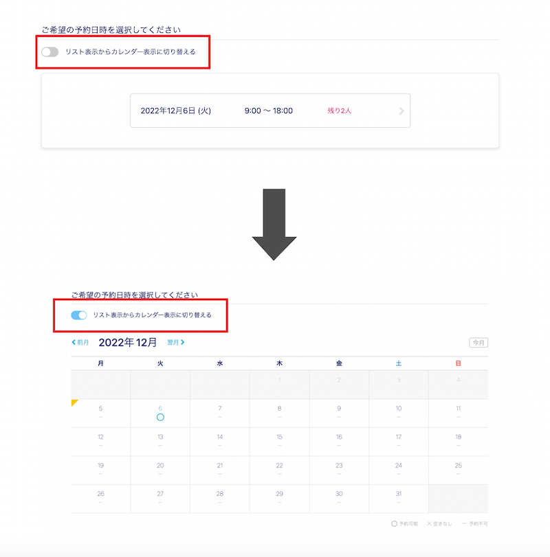 3 予約時のカレンダー/リスト表示の切り替えができるように!