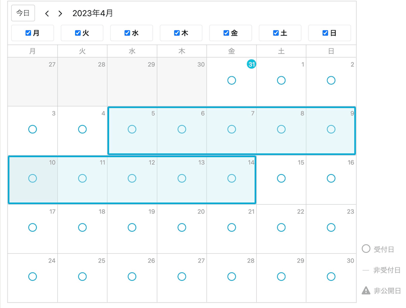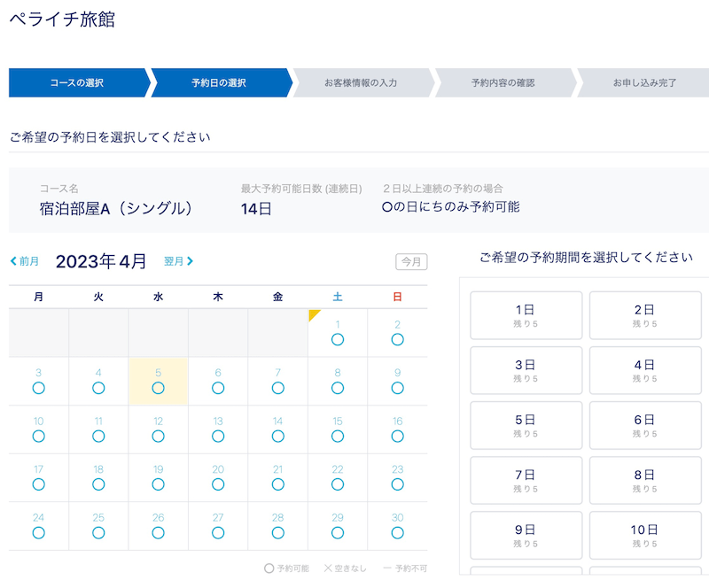 複数日付予約タイプでは日付をまたがっての連続日の予約ができるため、宿泊予約や旅行用品などのレンタルに最適です♪