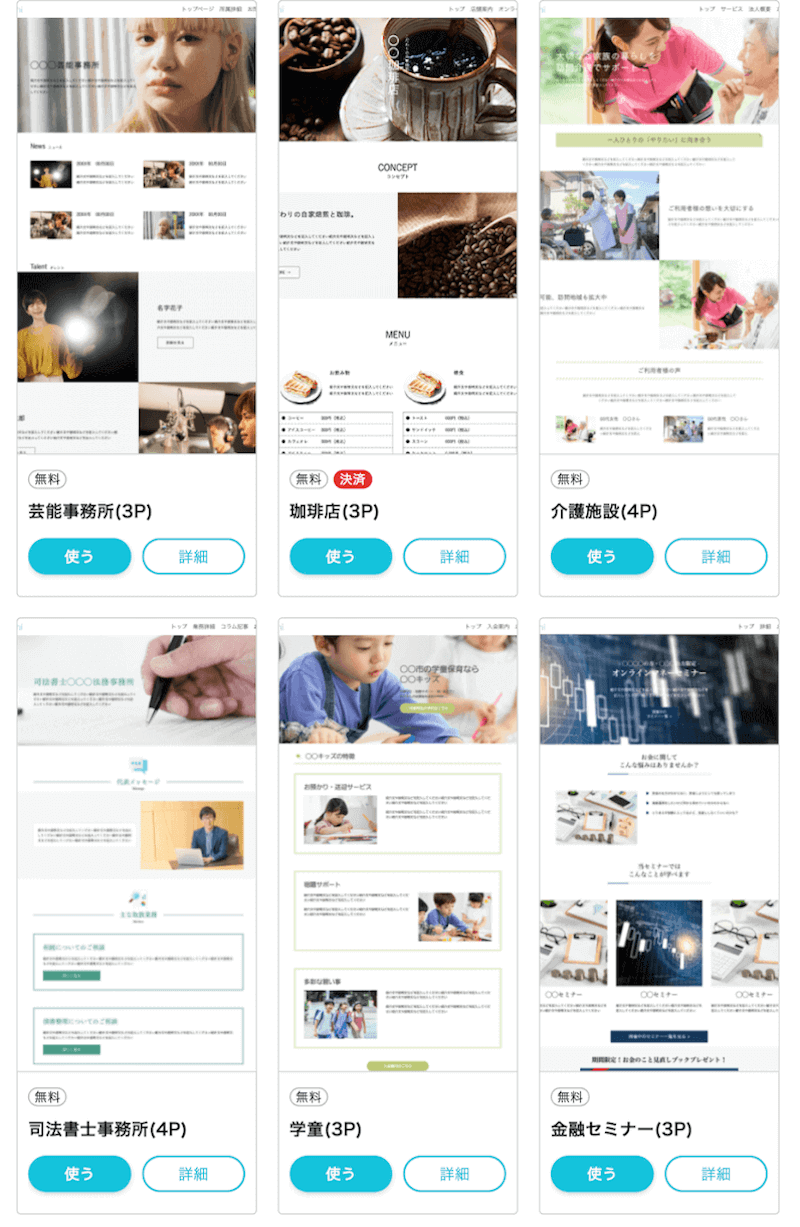 「珈琲店」や「介護施設」、「芸能事務所」などのサイトテンプレートを6点リリースしました!