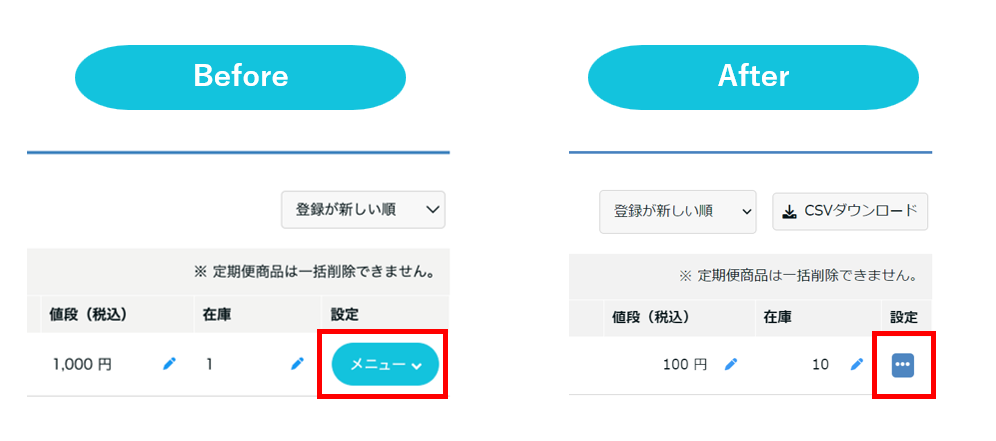 商品管理画面の利便性向上のため、一部デザインを調整しました。