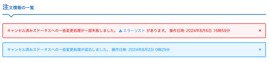 2注文ステータスの一括更新の結果が注文管理に表示されるように