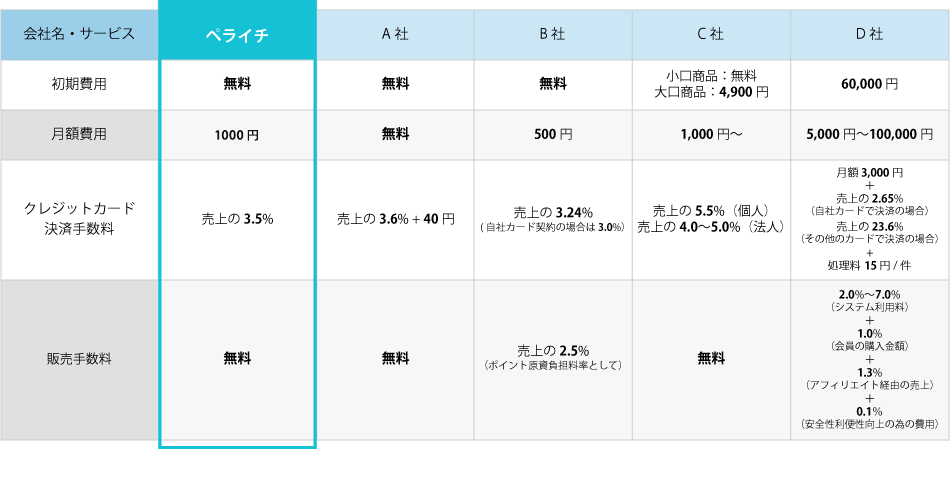 また、クレジットカードの決済手数料も売上の3.5%と業界最低水準の決済手数料も魅力です。