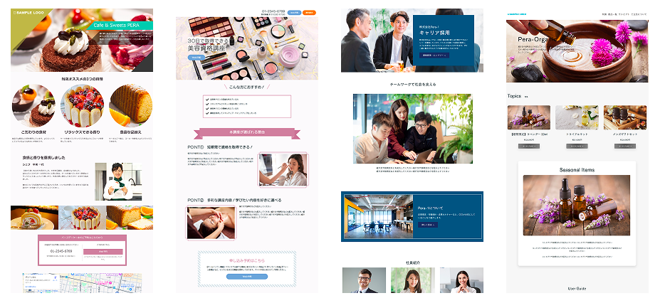 ペライチのデザイナー作ったおしゃれなテンプレートを使うことで、かんたんに見やすいあっという間にホームページが作れます!