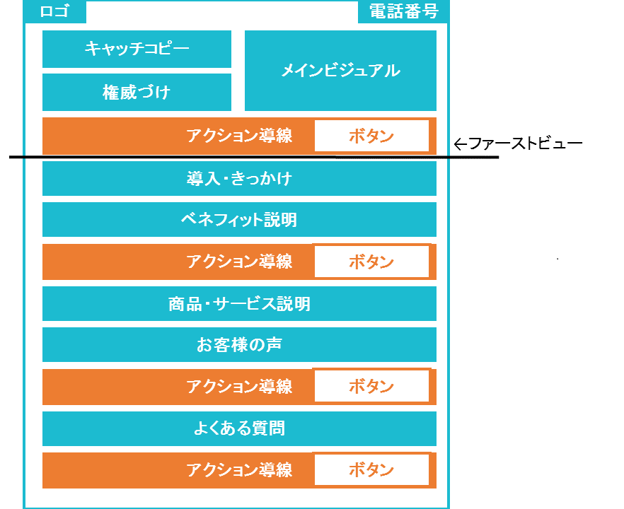ランディングページの作成には前項でもお伝えしたように、「ターゲットとなるユーザーに適切な順番で情報を開示する」ためにページ構成が非常に重要です。