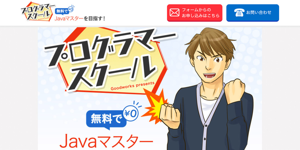 | プログラマースクール | java | 通学(東京・秋葉原) | プログラミング未経験者 |