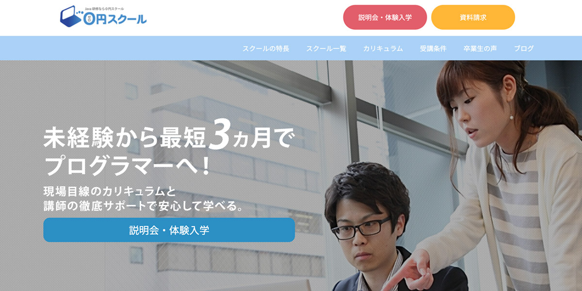 0円スクールは現場目線のカリキュラムで最短3ヶ月でエンジニアになる事ができるプログラミングスクールです。