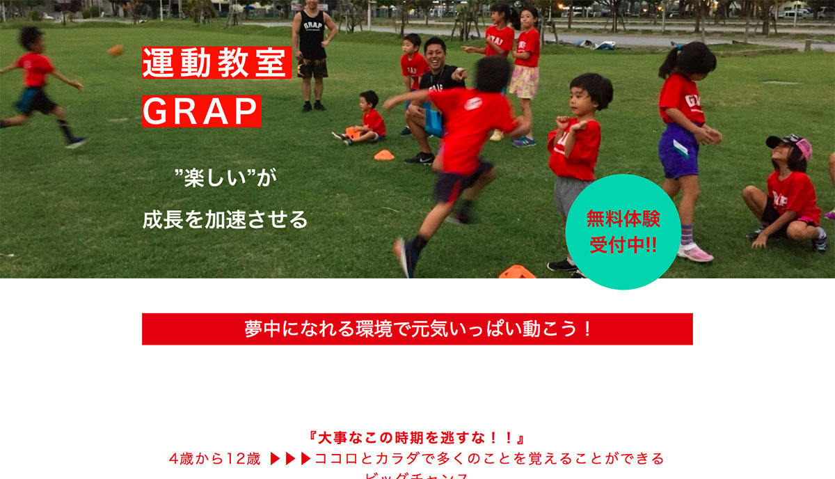 こちらは、幼児や小学生を対象に基礎運動能力向上を目的とした運動教室「運動教室 GRAP」様のページです。